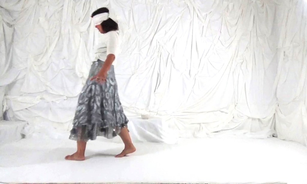 Dans cet athanor irradiant de blancheur, devant seulement dix spectateurs assis en cercle serré à moins de deux mètres d’elle, elle se livre durant une petite heure à un grand rituel de purification de sa lignée matrilinéaire. En alchimie, l’œuvre au noir (clin d’œuvre à Yourcenar…) consiste à plonger dans les ténèbres pour brûler les pourritures et ainsi transmuter le plomb en or. L’œuvre au blanc, à l’inverse, renvoie à un désir de lavage, de nettoyage des origines pour faire table rase et écrire, peut-être, une nouvelle page vierge de sa lignée.