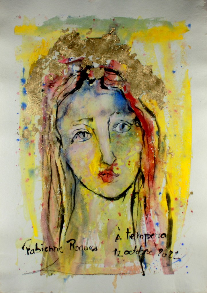 On ne racontera pas tout ici, mais Anne sera acquittée. Tous savent et tous se taisent, depuis des générations. Le secret se referme comme une chape de plomb, un plomb plombant, oui, qui ne se transforme pas en or, non. Il se transmet plutôt, en transmission de violence, d’opprobre et de recherche de respectabilité dans les futures générations féminines. Fabienne Roques a des filles et une petite-fille. Un jour, elle a décidé de prendre son stylo et d’écrire, puis de prendre ses pinceaux et de peindre, a tempera avec le jaune d’œuf et les pigments, puis de dire le texte, et même de l’interpréter. Les artistes vivent généralement mal avec le silence. Fabienne Roques ouvre l’athanor, pour ses filles et petite-fille, et pour nous toutes et tous au fond.
