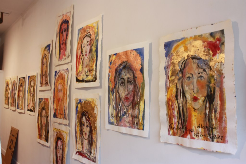 L’artiste inspirée par l’histoire d’Anne sa grand-mère maternelle, écrit, danse, joue, peint avec la technique de la tempéra (œuf et pigments).