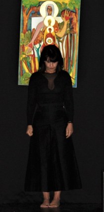Il y a deux ans, je suis trouvé par hasard dans un carton au fond de la cave quatre planches d’érable, des pigments et de la feuille d’or. Ce nécessaire complet pour faire des icônes appartenait à Bruno. Je me suis simplement dit qu’il serait stimulant d’écrire mes icônes, comme les anciens à la tempéra. Elles seraient personnelles, païennes et féminines(istes).